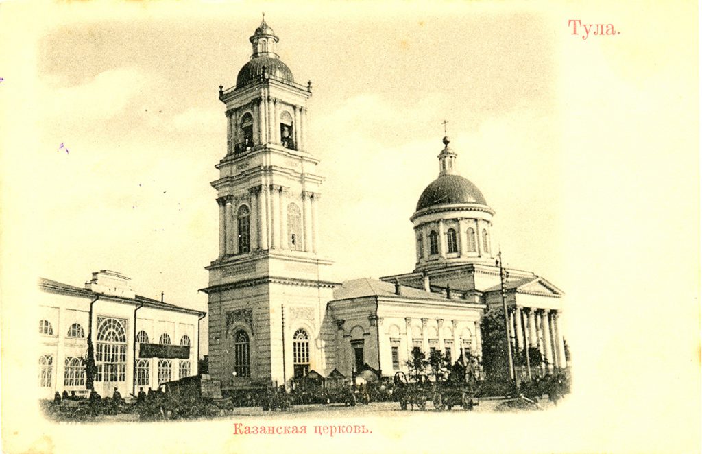 Казанский храм (около Пятницких ворот кремля). Освящён в 1858 году. Самый популярный в городе. Не будучи соборным, почитался таковым. Даже священниками, которым было известно, что не соборный, но как-то не верилось. Прежнее его здание и всех прихожан, и всю Тулу вполне устраивало, однако сильно пострадало от пожара. Новый был построен по проекту того же Федосеева, что снова неудивительно.