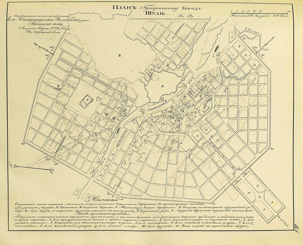 Утверждённый Екатериной II регулярный план губернского города Тулы. 1779 г. ПСЗ. СПб., 1839 г. План Тулы