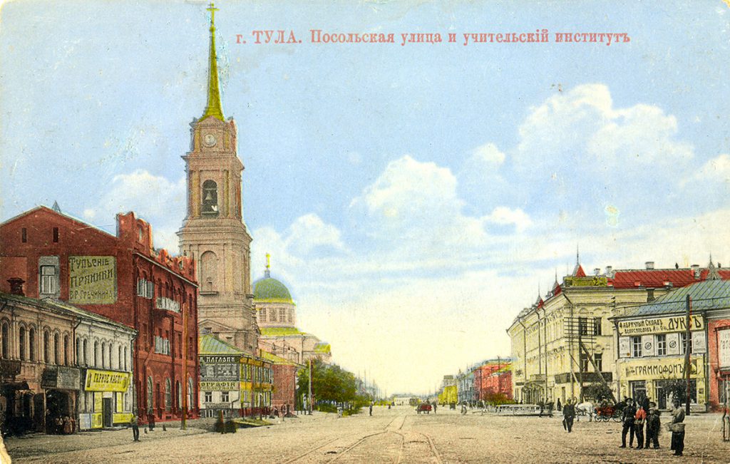 Спасо-Преображенский храм (на тогдашней Посольской, напротив нынешнего Детского универмага). Освящён в 1843 году. Его колокольня, достроенная ровно через полстолетия, стала самым высоким зданием Тулы, нисколько не подавляя, при этом, самого храма, и не перетягивая внимания от главной вертикальной доминанты города, кремлёвской колокольни. В 1917 году стал вторым соборным храмом города. Неудивительно, что к его проекту был причастен известный столичный зодчий Василий Федосеев.