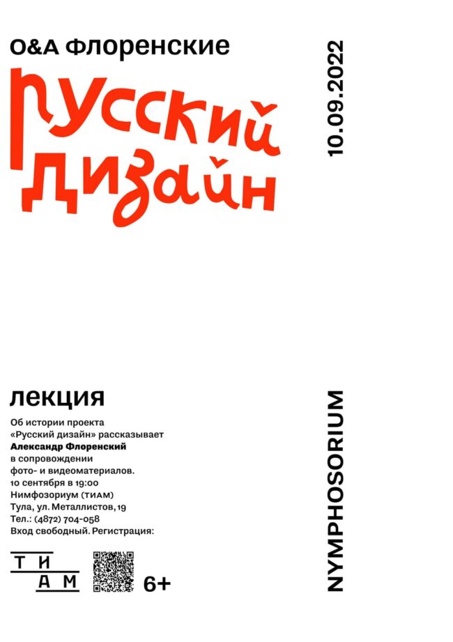 10 сентября приглашаем в новый филиал ТИАМа, Нимфозориум, на лекцию Александра Флоренского «Русский дизайн» Время: 10 сентября, 19:00. Место:…