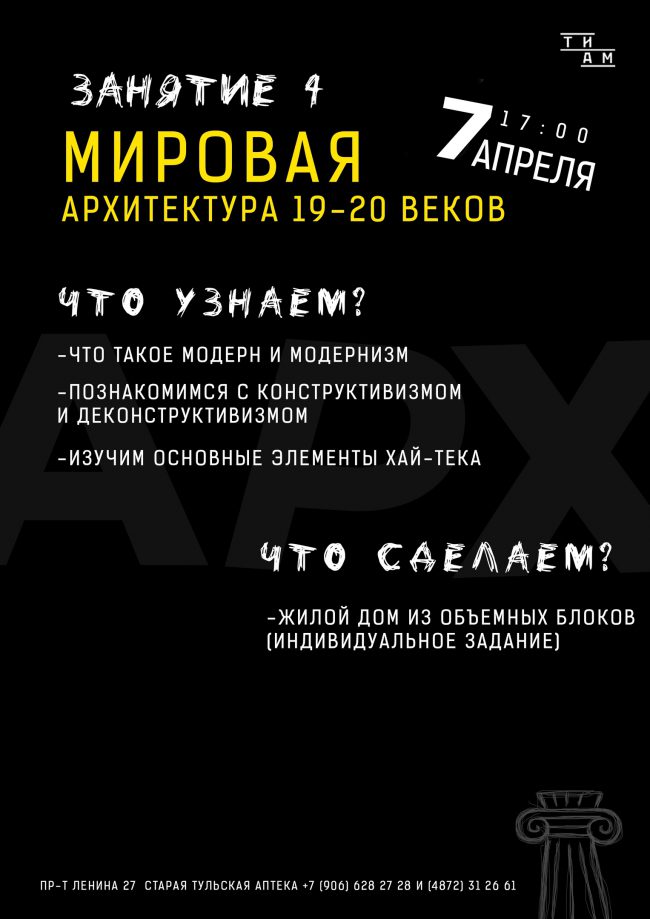 7 апреля в 17:00 проводим практическое занятие для детей в рамках архитектурного курса «АрхИстория». Тема — «Мировая архитектура 19-20 веков»…