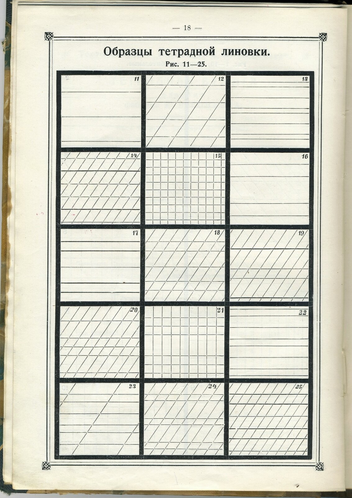 Для французского, немецкого, греческого, латыни существовали тетради со свой линовкой, да ещё и отдельно с наклонным и прямым письмом. Для различных ступеней обучения также предназначалась своя линовка. Основным назначением линовки всё же была выработка у учащихся начальной школы навыка красивого письма и каллиграфического стиля. К 1914-му году типов «линевок» было не менее 25.
