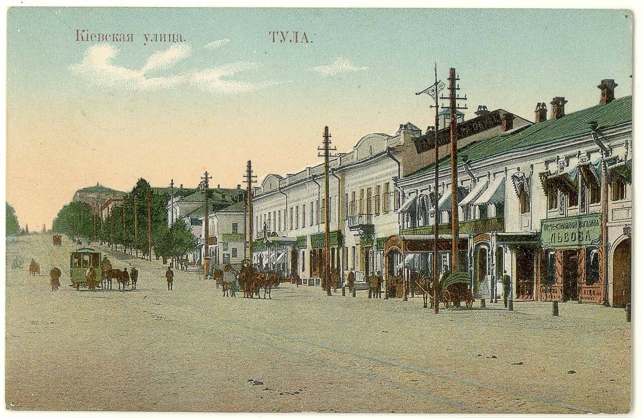 Писчебумажный магазина М. М. Львовой, Тула, 1911 г. Открытое письмо «Улица Киевская» (Пр. Ленина).