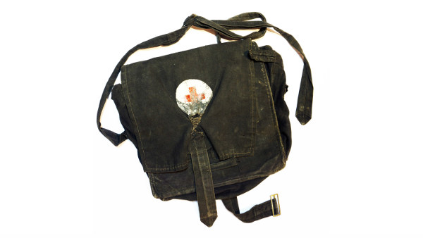 Сумка из экспозиции была передана в фонд музея жителями Ленинского района Тульской области. Ножницы, бинт и жгут найдены в районе деревни Шестерка, рядом с так называемым «Танковым» лесом, в Белёвском районе Тульской области. Они принадлежали санитарке, которая погибла, идя в атаку вместе с бойцами.