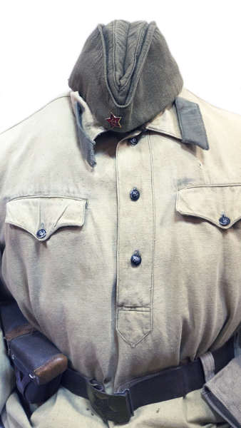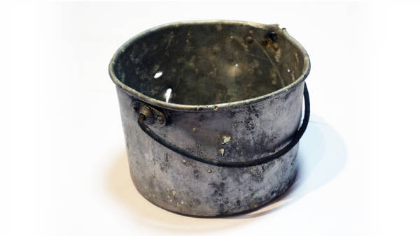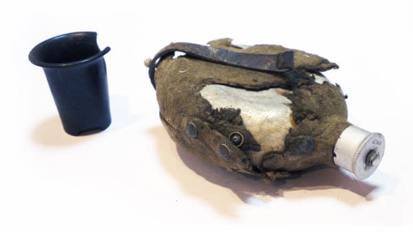Представленная на выставке канистра для воды также изготовлена кем-то из красноармейцев вручную: её конусовидная форма давала возможность тащить воду ползком, под огнём противника, без особых потерь содержимого.