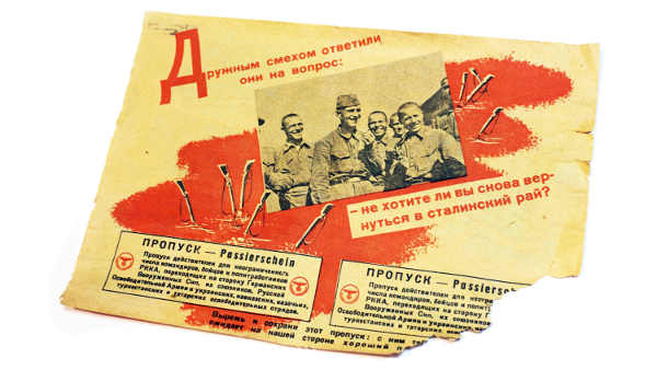 Немецкие пропагандистские листовки распространялись, чаще всего с использованием сил люфтваффе, как на территории Советского Союза, так и на территории большинства стран — участниц антигитлеровской коалиции. Они содержали предложения пополнить ряды предателей, например, вступить в Русскую освободительную армию под командованием Андрея Власова.
