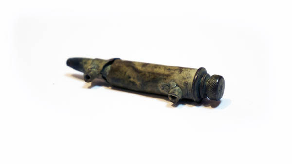 Курительная трубка найдена на местах боёв в Калужской области. Фронтовой портсигар передан в дар музею жителем Тульской области.