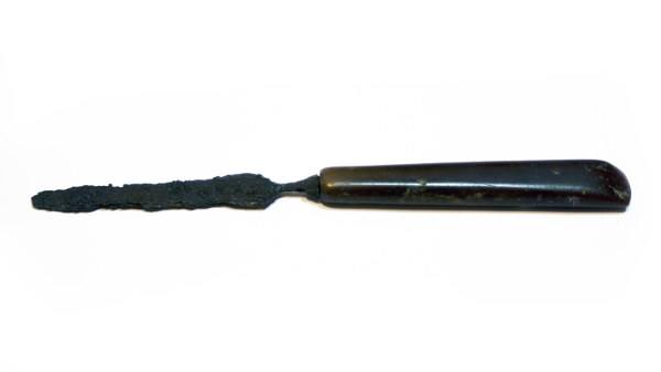 Нож для вскрытия писем с ножнами и перьевая ручка переданы в дар музею жителями Тульской области. Щипчики и пилка для ногтей, мясорубка, флаконы из-под одеколона найдены на местах боёв в Калужской области. Фрагмент «кости» домино найден на местах боёв в Тульской области.