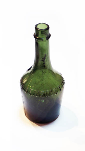 Флакон из-под одеколона: 18х10х7, стекло, внутри фрагмент пробки