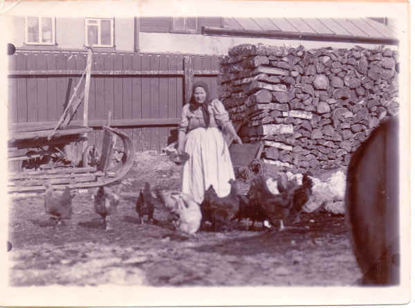 Достаточно беглого взгляда на эту фотографию, чтобы догадаться: это – не фрау Белявски, не фроляйн Адерман и даже не «седьмая вода на киселе» (Siebtes Wasser auf Gelee). И, тем не менее, это – важнейший член семьи, настоящий Дух домашнего очага. Кухарка Мария Зуева (Адерманы звали её Марьюшкой) прослужила своим иноязычным господам почти полвека. В первые годы после революции она не раз спасала беззащитную Ольгу Адерман от неистовых реквизиций и экспроприаций. Брутальные большевики краснели от увещеваний старушки и пристыженно удалялись ни с чем. На фото Марьюшка угощает хозяйских кур во дворе «Старой тульской аптеки», тогда ещё новостройки. Да, она отвечала не только за кухню. Корову доила тоже она, а общий любимец, кот Зайчик, всегда сопровождал её ранним утром в хлев. Когда справляться с хозяйством стало невмоготу, старая Марьюшка отправилась доживать свой век к внукам. Но переносить разлуку с барыней ей пришлось недолго. Внезапная смерть верной Марьюшки послужила для Ольги знаком к отъезду: теперь с Тулой и Россией её уже ничто не связывало.