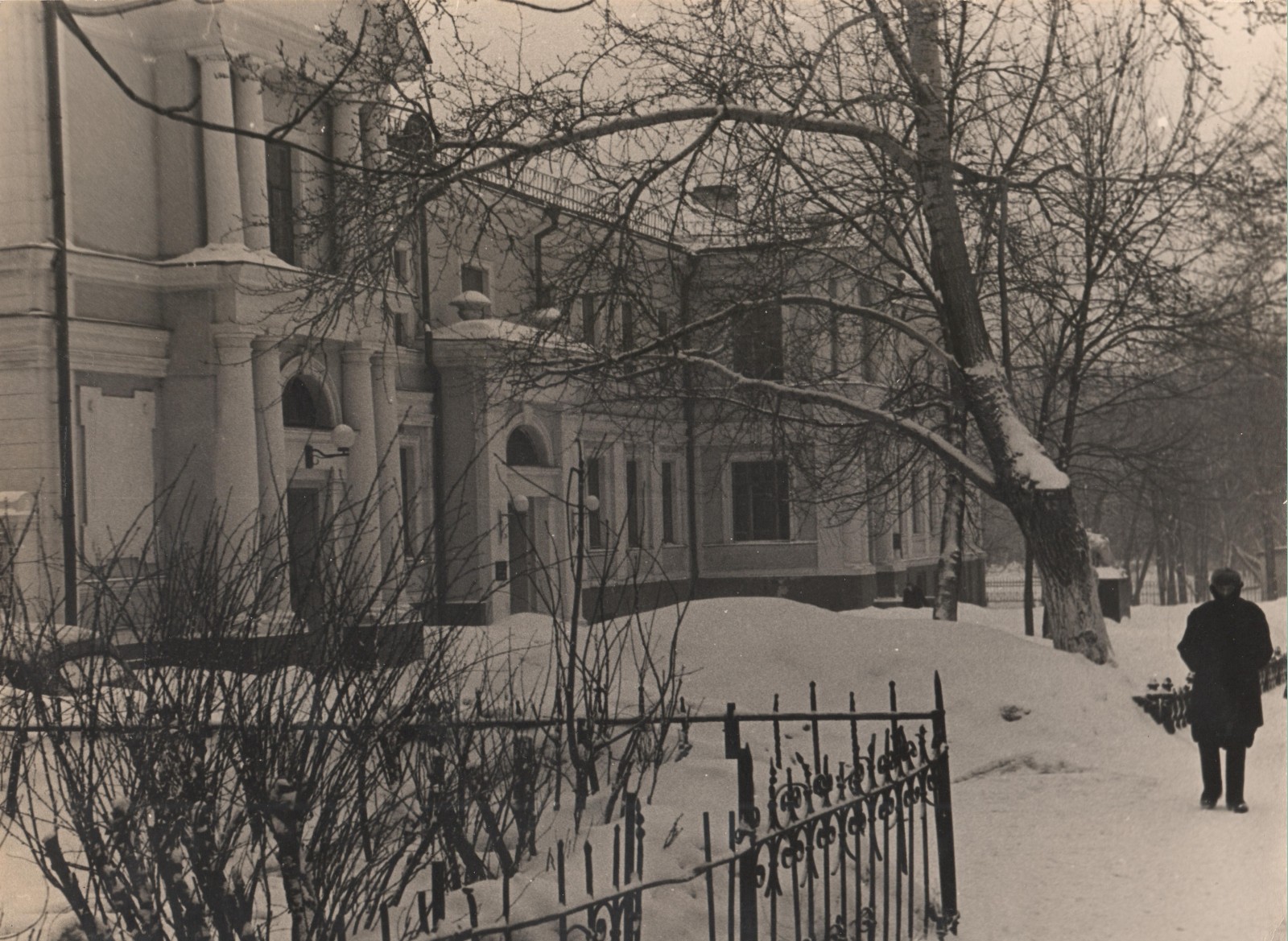 К середине 1930-х Советская власть стала вкладывать серьезные средства в воспитание подрастающего поколения, и в 1937 г. в здании открылся Дворец пионеров. Поскольку дети, как известно, наше будущее, простой сменой вывесок дело не ограничилось. Здание было полностью реконструировано, восточная часть – искусно надстроена третьим этажом. Оригинальную чешуйчатую кровлю центрального купола не тронули: с тех пор, как ее уложили, на тот момент прошло менее полувека, а для хорошего дореволюционного железа пятьдесят лет – не срок. Кровлю купола заменили, видимо, уже после Великой Отечественной. Однако надо отдать должное тогдашним мастерам – сделали это настолько аккуратно, что сегодня она воспринимается как оригинальная. Второе крыло Дворца осталось двухэтажным, зато его украсили фигуры юных пионеров. Они-то и стали своего рода изюминкой этого снимка.