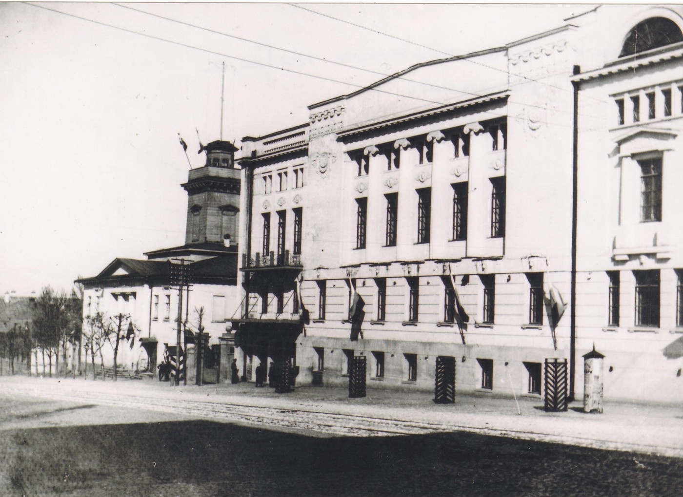 Смех смехом, но окраска именно в жёлтый цвет долгие годы была особенностью казённых строений, чему Тула служит ярким примером. И балкон каланчи, и здание дворянского клуба украшены флагами – значит, фото сделано в один из праздничных, или, выражаясь тогдашним простым языком, «царских» дней. К ним относились дни рождения императора, императрицы и наследника престола, дни их тезоименитства, то есть праздники святых, в честь которых коронованные особы получили свои имена, а также дни восшествия императора на престол и коронации. Расцветка флагов была такой же, как сегодня: три горизонтальных полосы – белая, синяя и красная