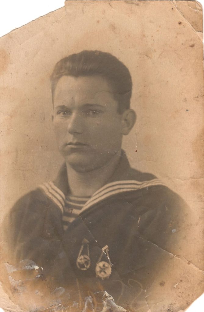В конце 30-х произошёл переход к всеобщей воинской обязанности. До 1939 года, как известно, в Советском Союзе всеобщей воинской обязанности не было. Не могу сказать, фото сделано до 1939 или после, но мне кажется, что это конец 30-х годов. Такой вот краснофлотец. Предположительно краснофлотец, потому что если бы это был кто-то из младшего комсостава, то сфотографировали бы так, что видны были бы нарукавные знаки различия.